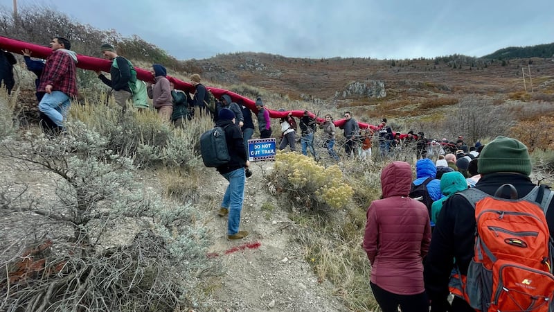 A group of volunteers organized by the Major Brent Taylor Foundation gathered last Saturday, Nov. 1, to haul the rolled-up, 150-by-78-foot flag up a trail to the point where it was unfurled. More activities are planned as part of what the foundation dubs Veterans Week, a series of activities to honor military service, promote patriotism and pay tribute to those who have died in military service. Veterans Day is Nov. 11.
