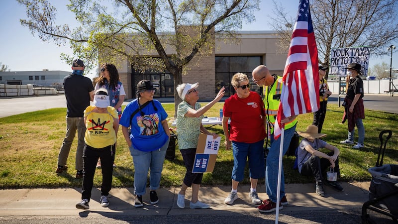 “Our purpose is to try and make people aware that people are being processed in an industrial area, and if that isn’t bad enough, they’re being processed in the middle of the night,” said David Belnap, protesting with about 15 others outside the site at 2487 S. 1620 West on Friday. “So people are being brought in here. There’s no lights. They have no idea where they’re going. They’re already terrified.”